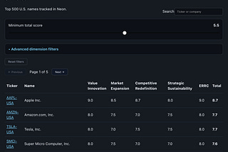 We use AI to score 500 US stocks on innovation and competitive positioning.