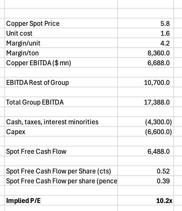 Below is my back of the envelope for Glencore’s EPS at the current copper price using the spot free cash flow slide from the December 3rd Capital Markets Day, which is worth flicking through. They are making a move to be the bigger copper producer in the world.