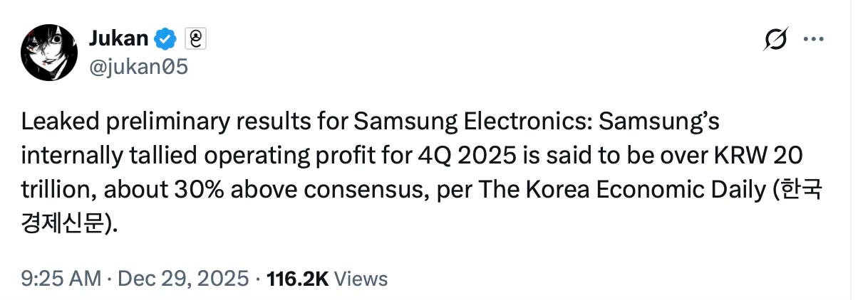 Then Samsung earnings are also going to be insane. The whole Korea ETF should do well again in 2026.