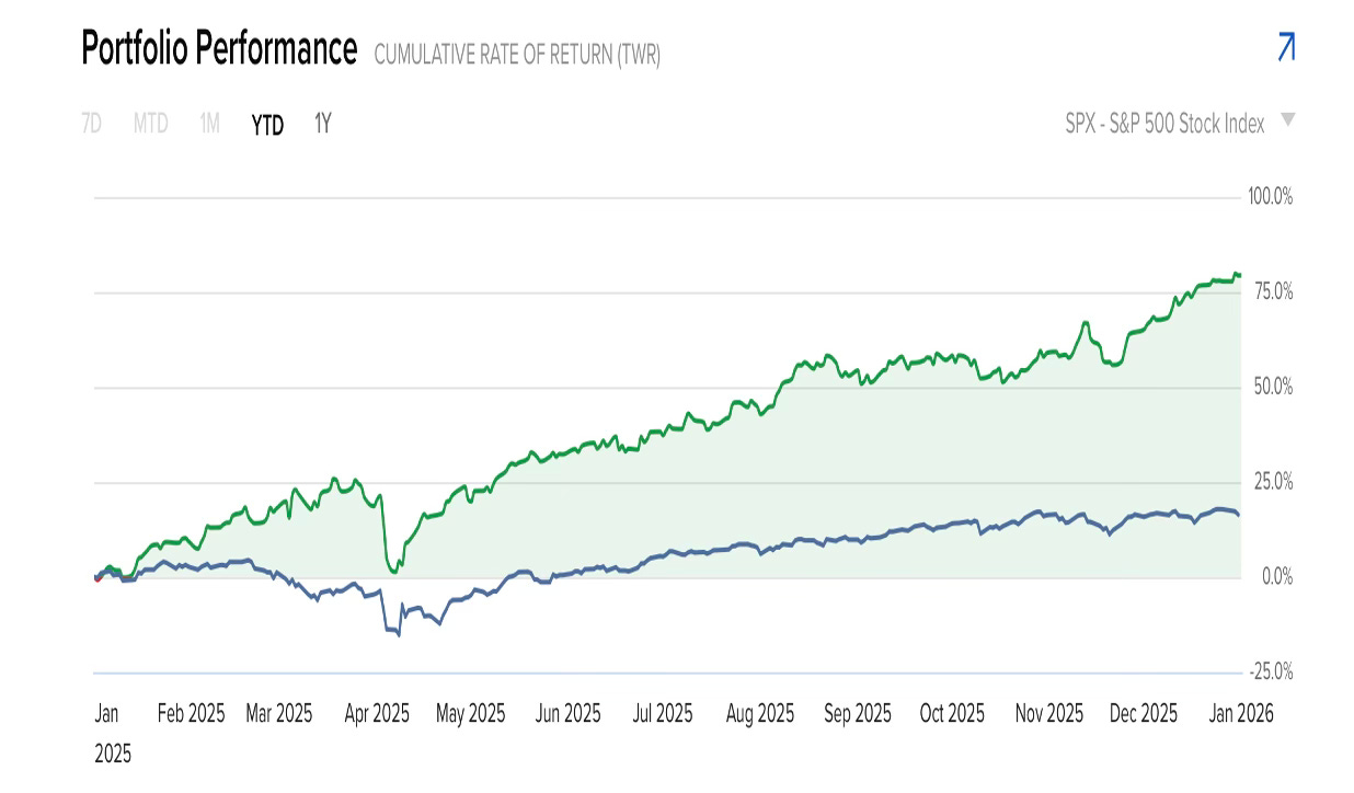 The whole mishmash of everything was +48% in 2025. The AI allocation is Nvidia, Amazon and Meta. I bought these in June. After watching Jensen’s Computex presentation in Taiwan I had to own it. The guy is insane. I want to be onboard.