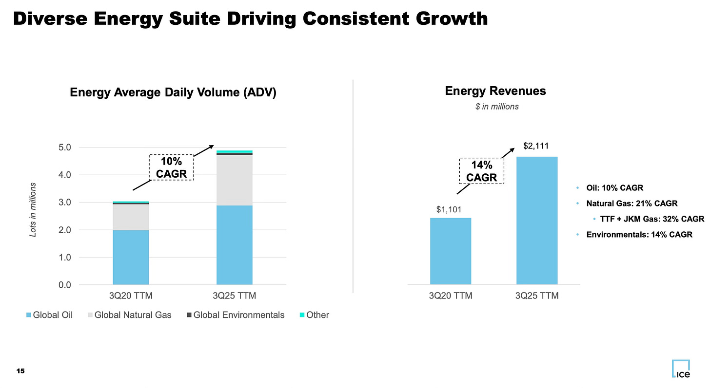 Erik: OK. Let’s get into energy first because that’s where it all started when you acquired the International Petroleum Exchange in 2001. I remember there was an initial play around the potential to grow oil trading volumes by moving the trading to electronic, but I’m just amazed how much the energy volumes keep growing year after year. Can you help us get some perspective on this?
