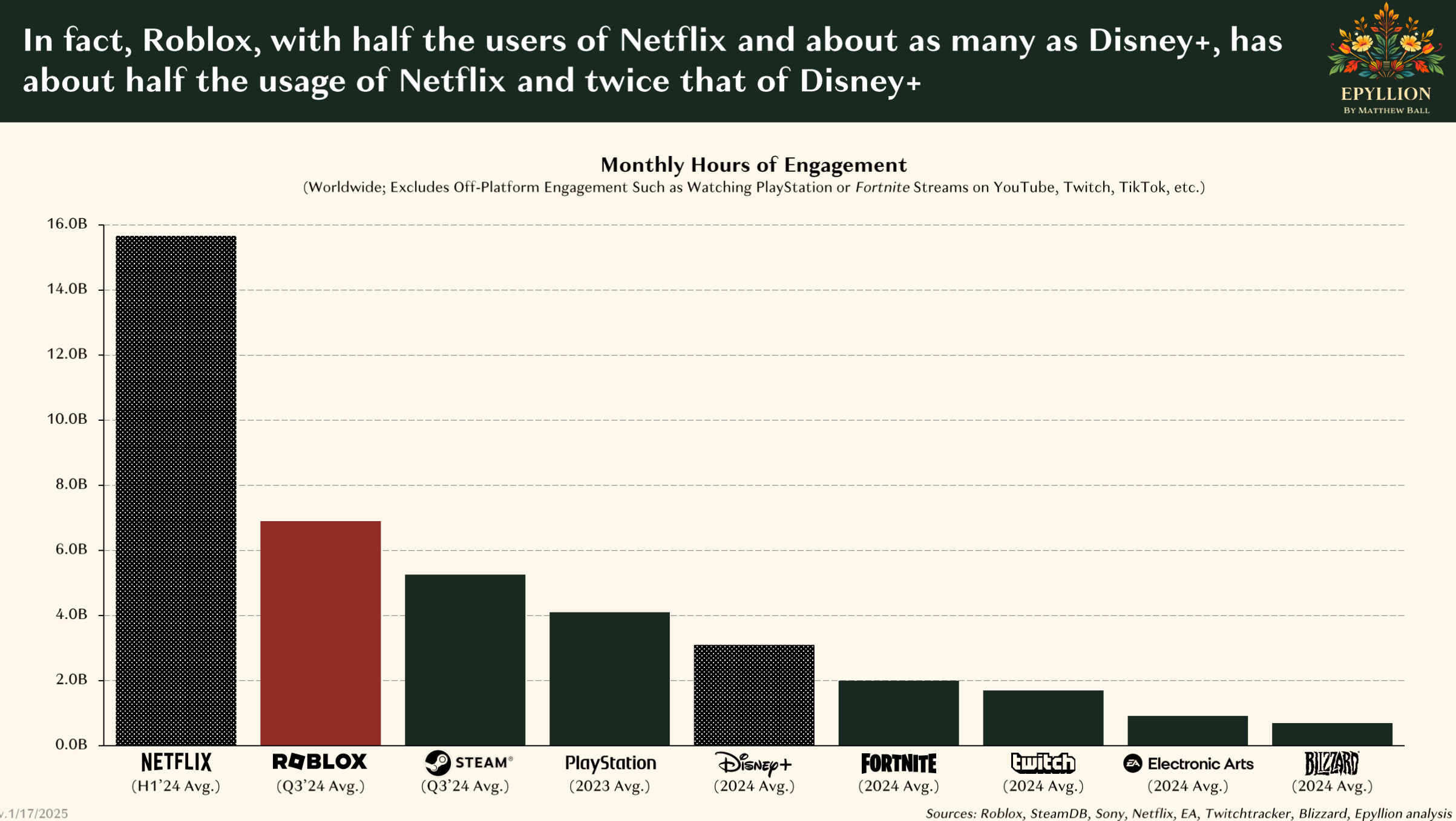 Roblox has become a top 21 holding and is +124% YTD. We flagged Roblox’s surprising and under appreciated user metrics in January’s Killer Charts along with a link to Mathew Ball’s super comprehensive State of Video Gaming presentation.