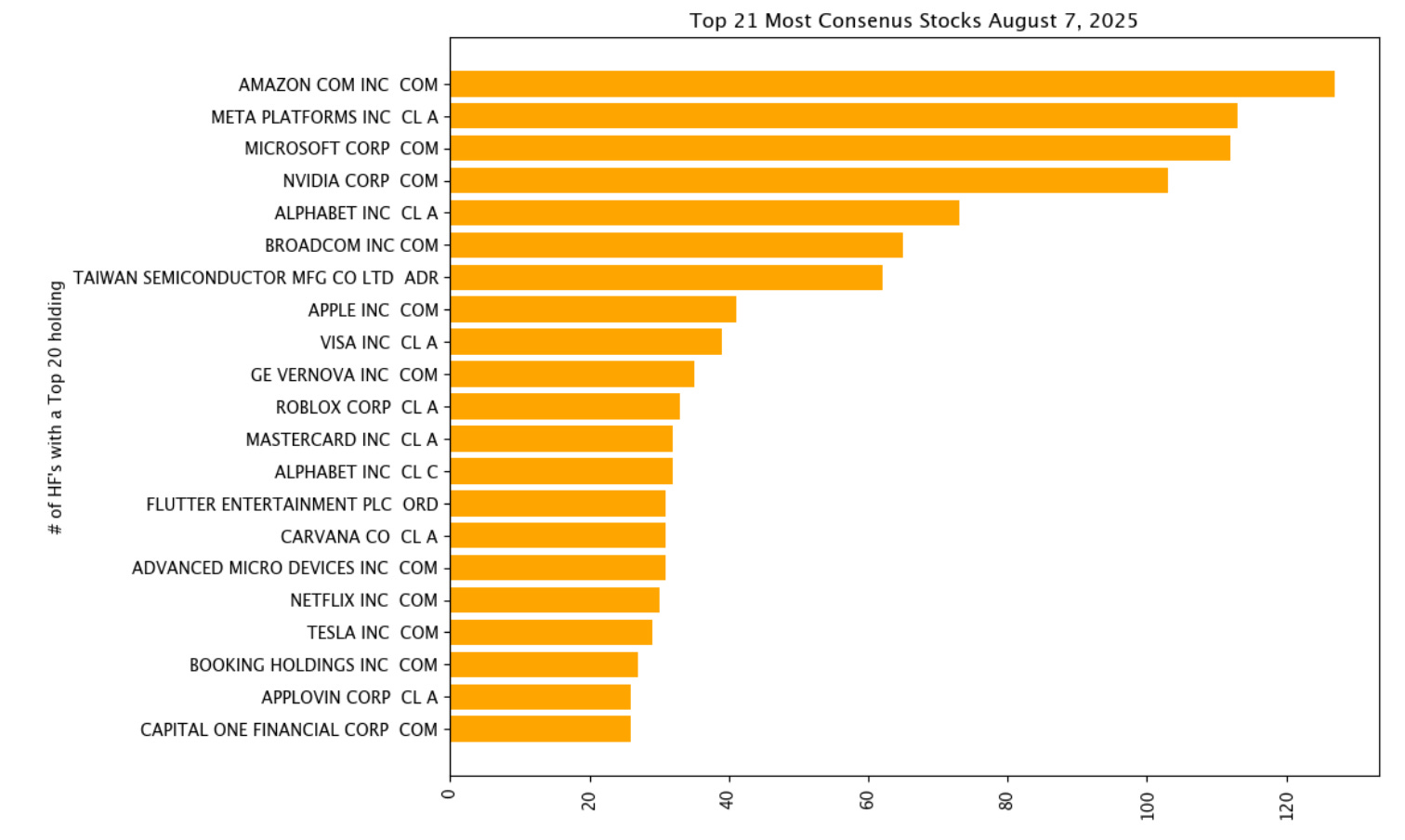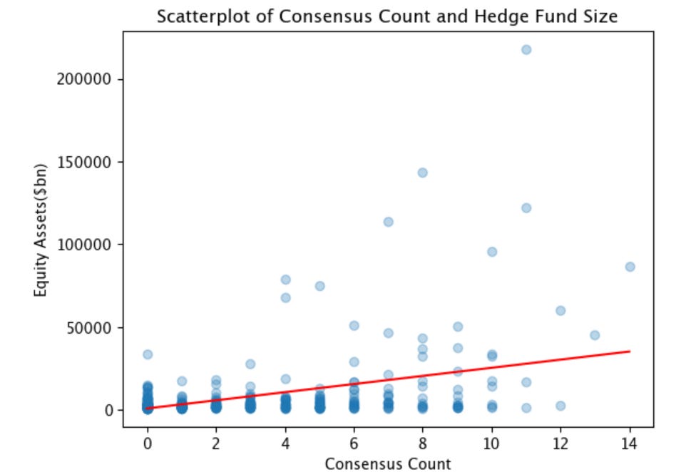Which is why you find a direct correlation between hedge fund size and how many of our Top 21 Consensus names they own. The bigger the fund the more they are all doing the same thing.