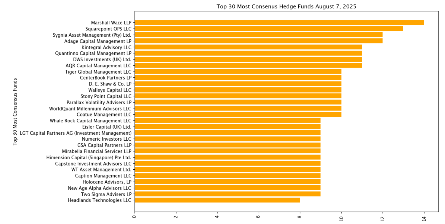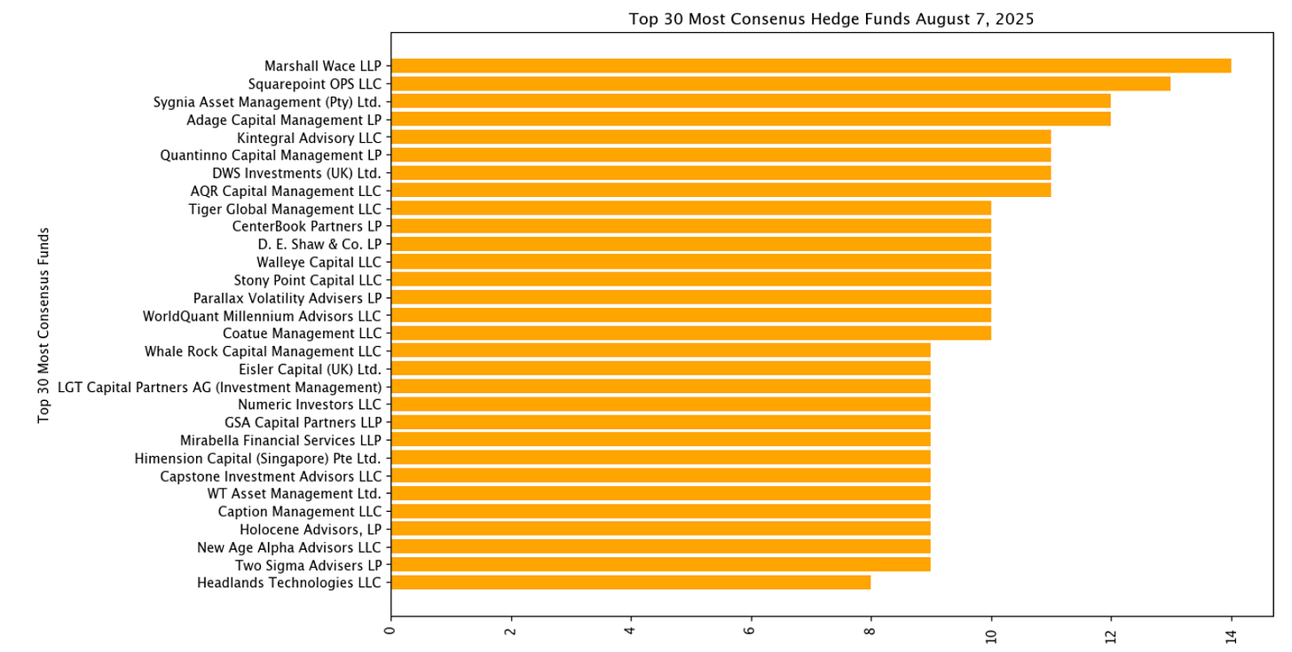 Marshall Wace needs to make sure they don’t get complacent though because Squarepoint with $45 billion in equity positions and 13 consensus positions is nipping at their heels.