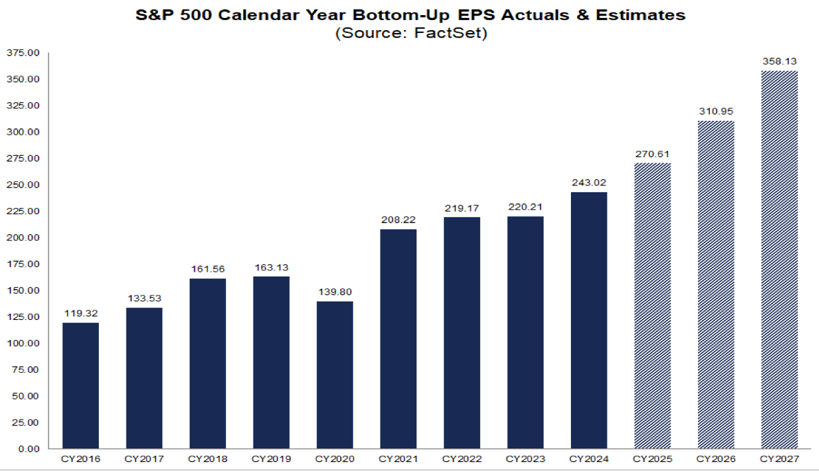 Think ahead to where we will be in late ‘27… it’s likely we will be looking ahead to a ‘28 EPS of $393/share. Put that on 25x and we get S&P 10,000. Yes, that crazy target people tell me I should stop talking about.
