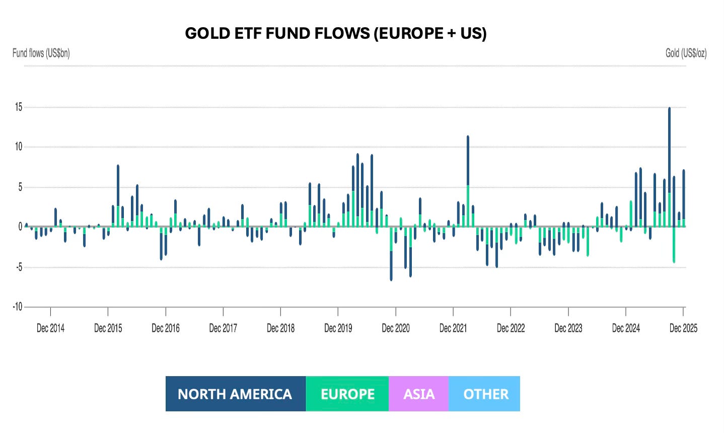 CFTC positioning is middle of the range and ETF flows are high, but not extreme given what’s unfolding, especially if you strip out Asian flows.