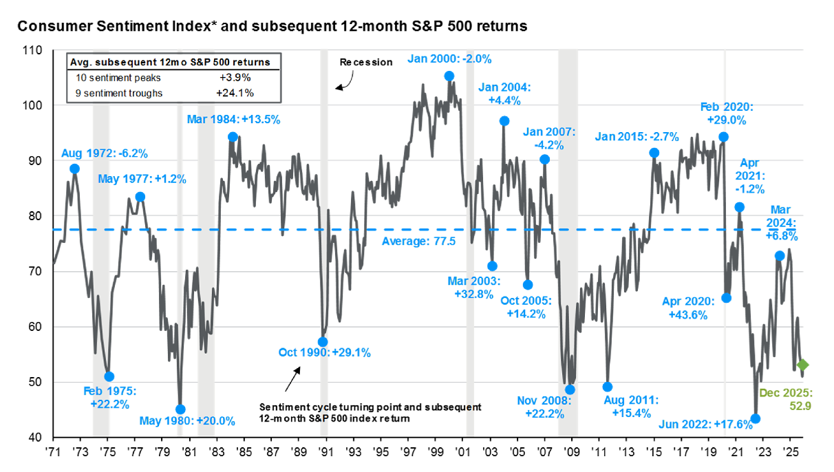 Turns out that is all positive too. When consumer sentiment is this bad, it’s usually positive for S&P 500 returns over the next 12 months.