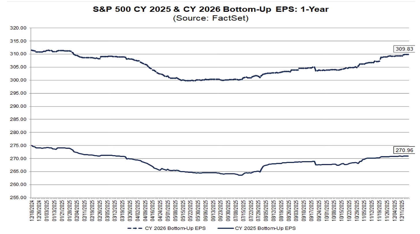 #1 S&P 500 earnings look fine. We came through Q3 and are still getting earnings estimate upgrades with 15% EPS growth projected for 2026. That’s a great combo. We should be able to hit $7,500 on the S&P 500 in 2026.