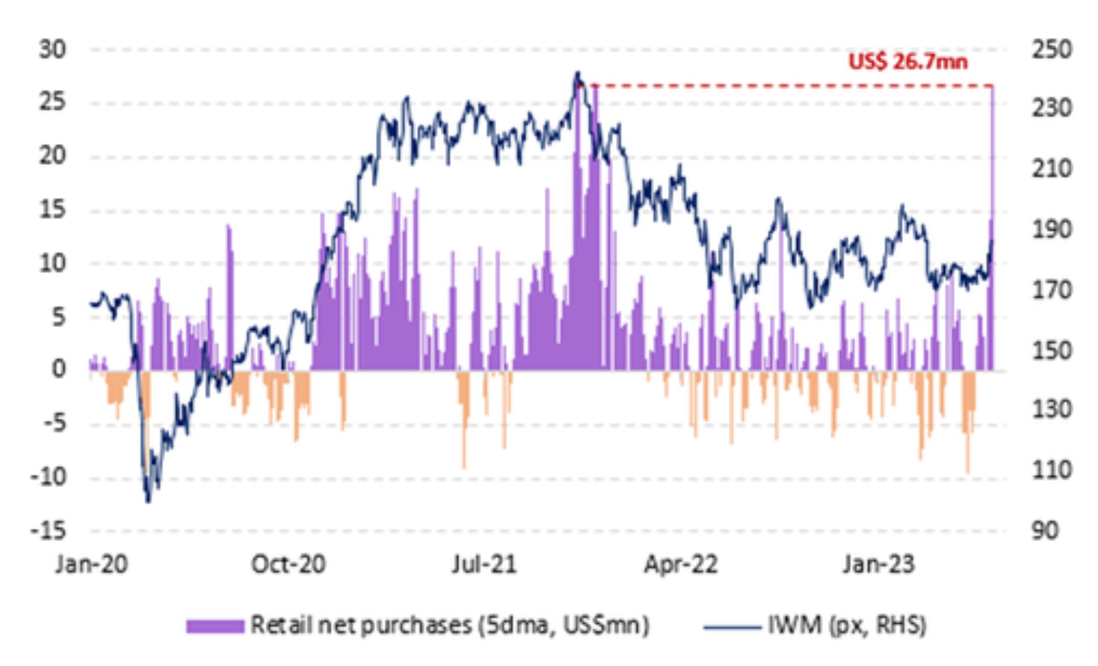 Retail purchases of the Russell 2000 ETF