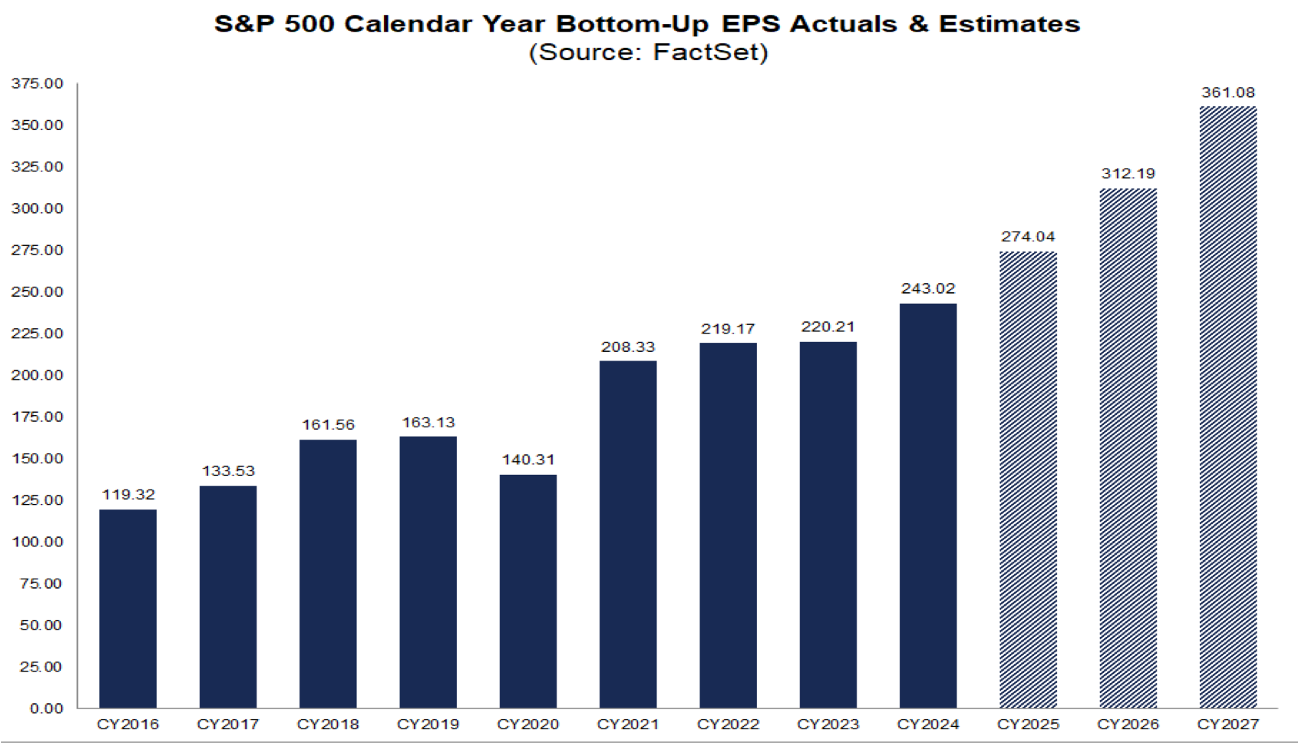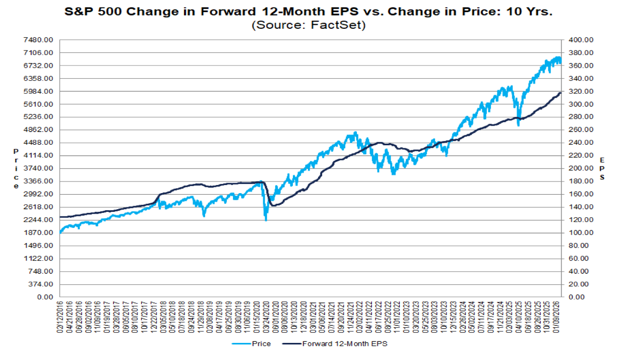 Earnings growth for the S&P 500 is accelerating! Earnings are expected to grow 14% in 2026 and 13% in 2027.