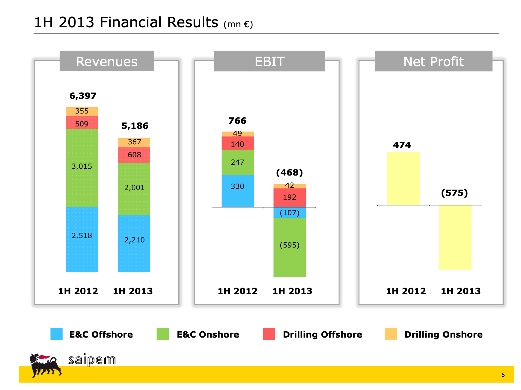 By 1H 2013 the problems started. Onshore US shale was providing an easy alternative to expensive, complicated offshore oil and gas projects. But the real problem became onshore construction where Saipem had underpriced and mismanaged its projects. In 1H 2013 Saipem lost EUR 595mn in E&C Onshore and was losing money in offshore too.