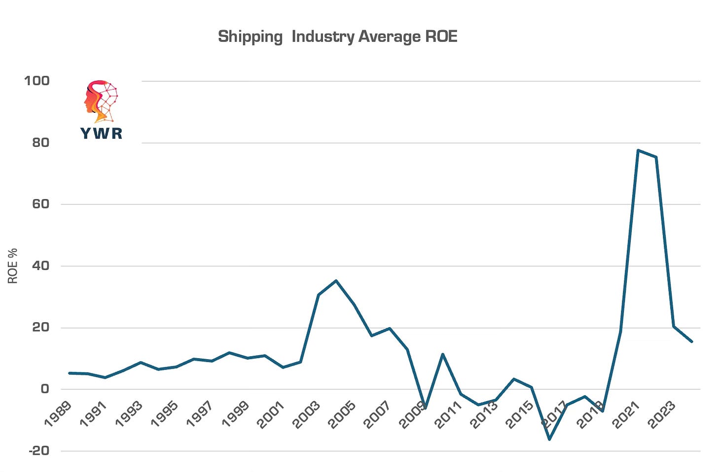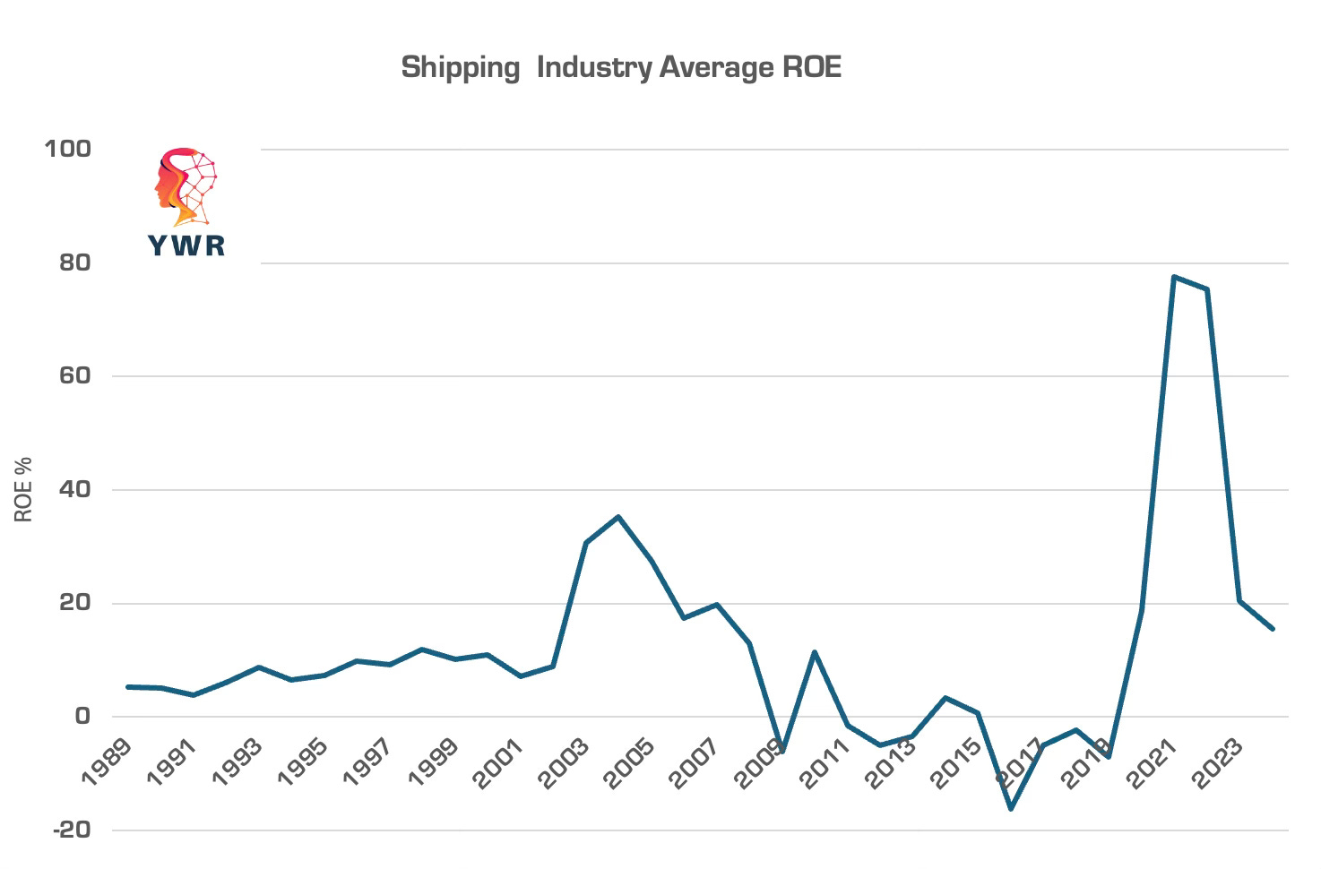 Below is a 30 year chart of the average ROE for 10 shipping companies (Japanese, Chinese + European).