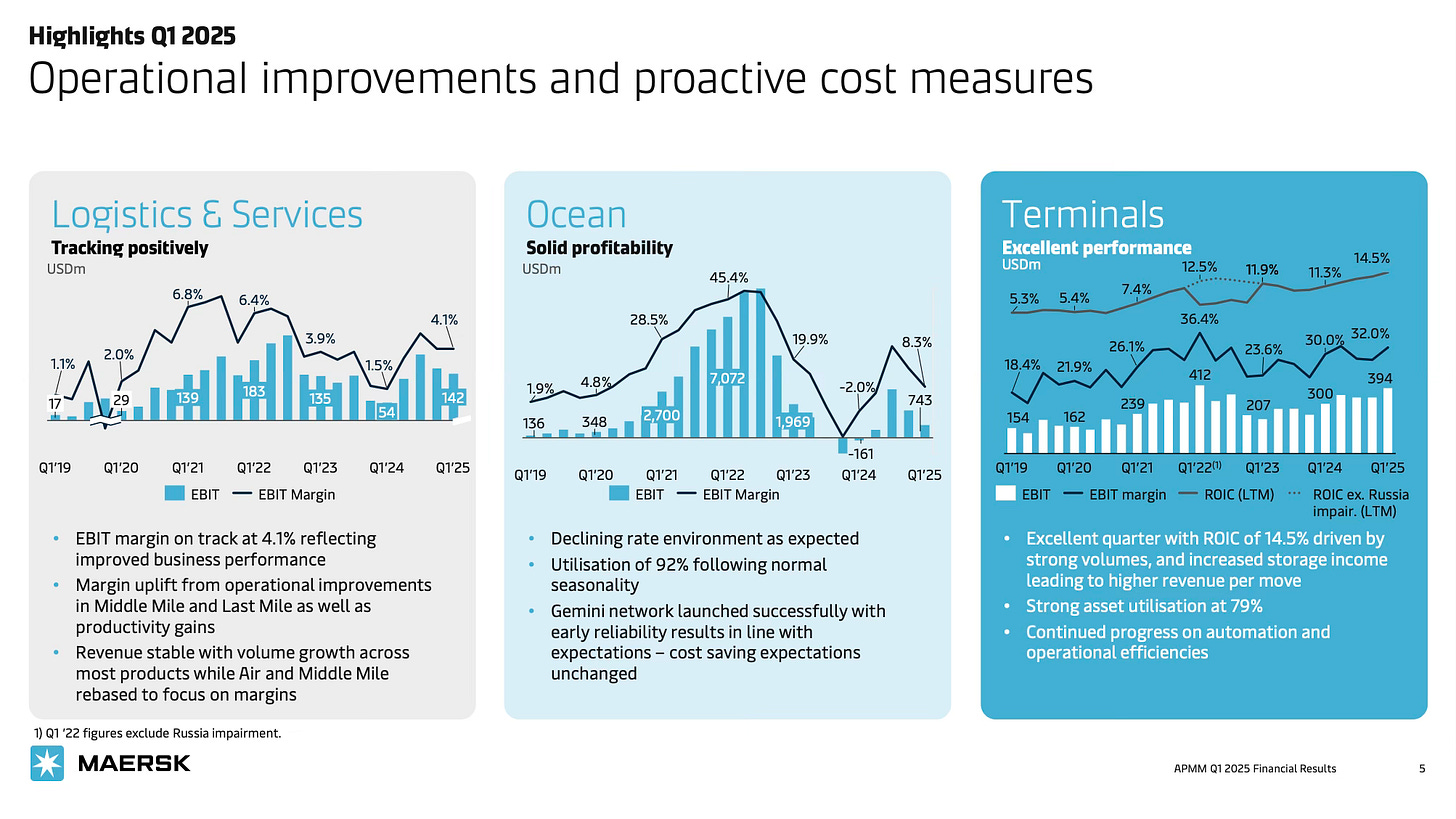 Is the paradox that global conflict, Tariff war start-stops, ESG rules, China + 1 and added complexity, are all positive for the container shipping industry? It requires more ships, more terminals, and the chance to add more value added logistical services?