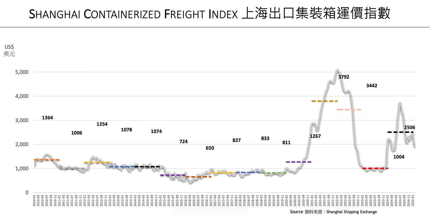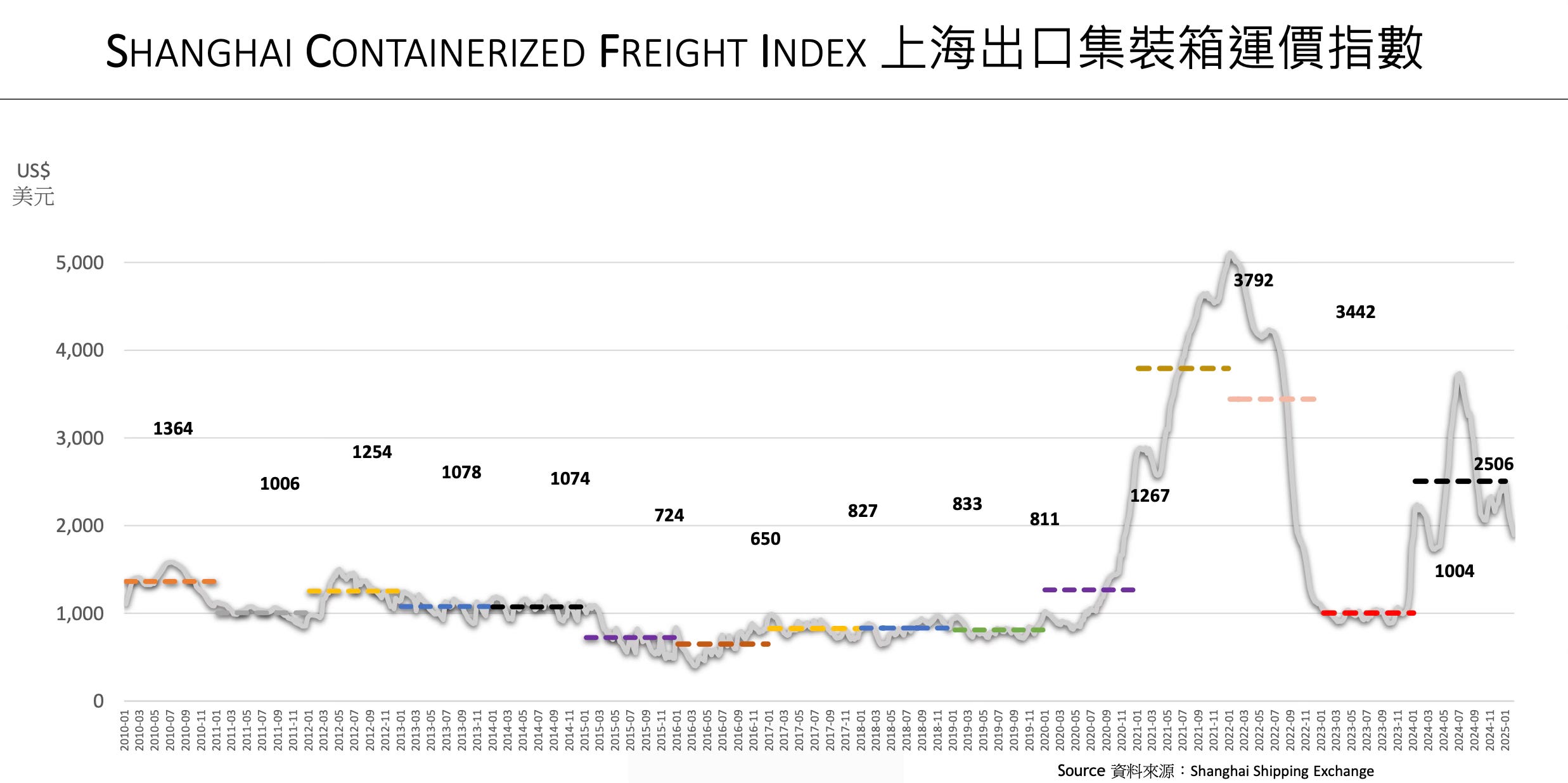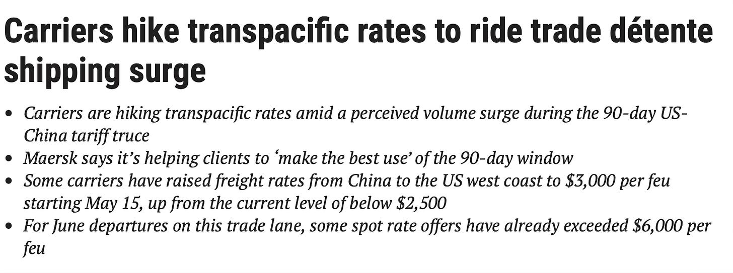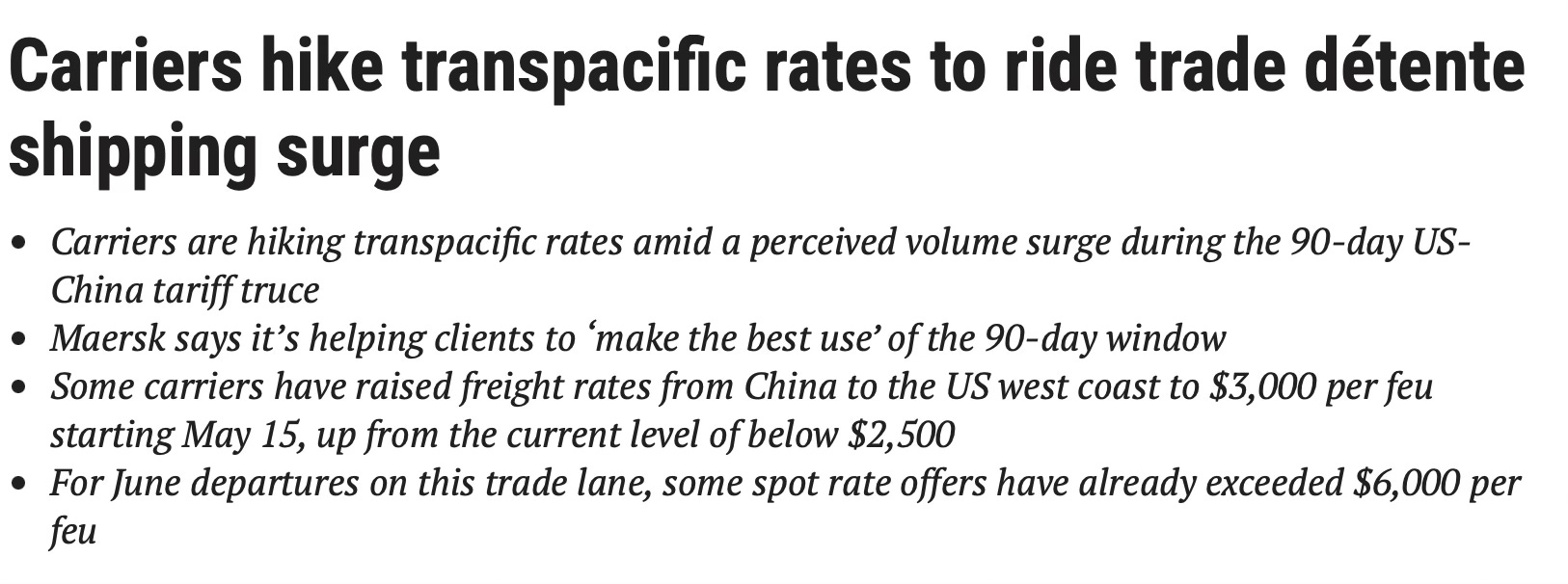 Then in 2025 the Stop-Start of Tariff War creates windows of detente where inventory orders and shipping rates surge => Shippers boom?