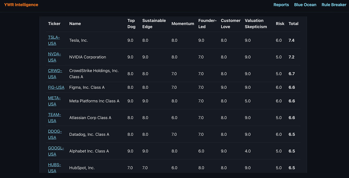 We used AI to run David Gardner’s Rule Breaker framework across 500 stocks in the US then created scores for each attribute. You can now sort and filter stocks based on his key attributes. When you click into each stock you get a narrative analysis for each score.