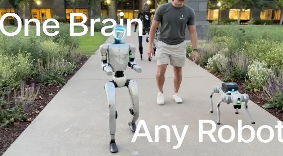 The Skild Brain takes a different approach. It is the industry's first unified robotics foundation model that generalizes across tasks and robot hardware. Our omni-bodied model can control any robot without prior knowledge of its body form, including quadrupeds, humanoids, tabletop arms, and mobile manipulators. It enables robots to handle everything from simple household chores like cleaning, loading a dishwasher, making an egg, to physically demanding challenges such as navigating slippery terrain. If there is a machine that can move, the omni-bodied Skild Brain will operate it.