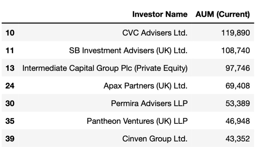 Top PE funds in London.