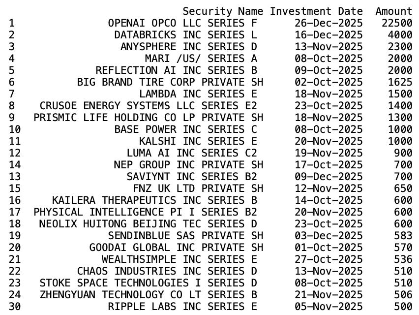 The full dataset of PE/VC investment rounds in Q4 2025 is below.