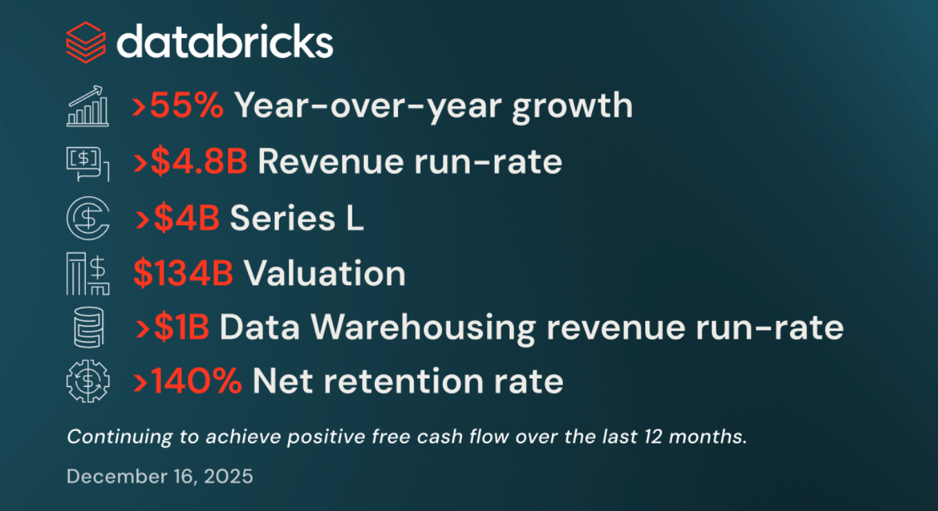 Databricks: As we observed in How to analyse 2,000 stocks in 2 hours, databases are turning into a key piece of infrastructure for AI workflows. Databricks, Snowflake (and Neon) have become hot properties.