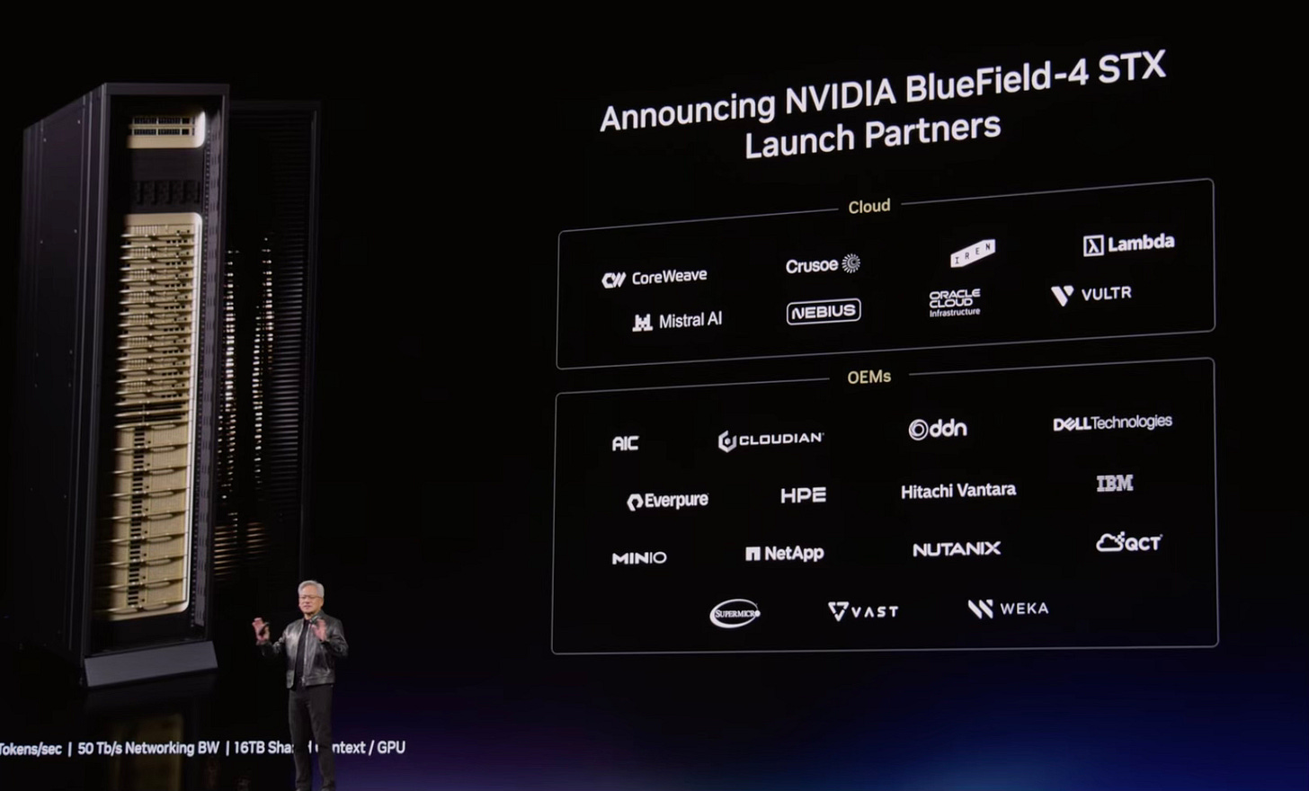 #3 “The storage system is going to get pounded!” (1:35:05) This was one of the most emphatic comments Jensen made over the 2 hours. It stood out. Nvidia is working with enterprise storage companies to make sure storage can keep up with the ever faster GPU’s. Storage is a new bottleneck.