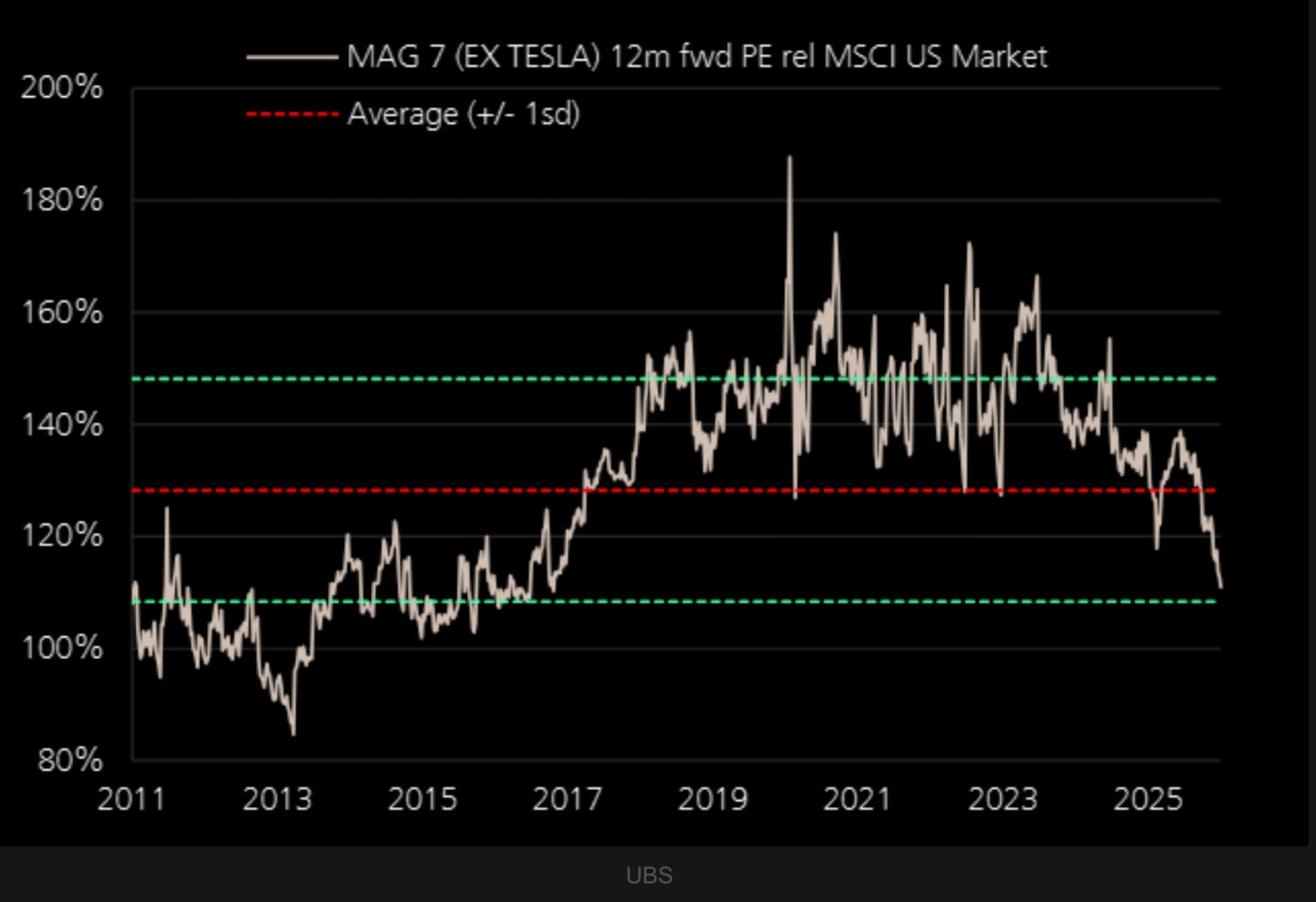 MAG7 have all derated back to average market multiples. But once MAG7 have hooked corporates on the AI drug won’t they raise prices and grow earnings for years? It’s another reason I think the whole market could be a buying opportunity here.
