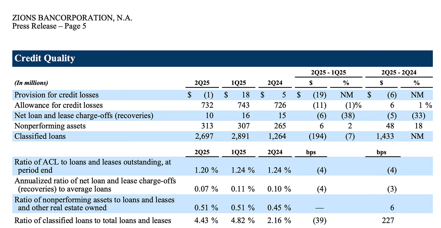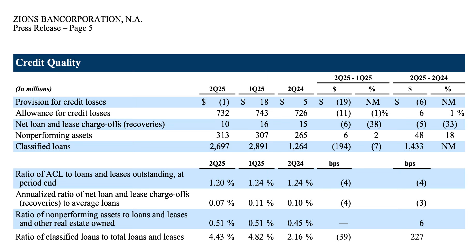 Yes, anything can happen, but a banking crisis seems like a low probability right now. The banks haven’t been lending aggressively, the Fed is cutting rates, unemployment is super low, wage growth is good, GDP is growing >3% and the whole world is on a US capex spree. NPL’s at Zions are 0.5%. Basically, 0, which is why that $50 million loss was such an aberration and had to be disclosed.