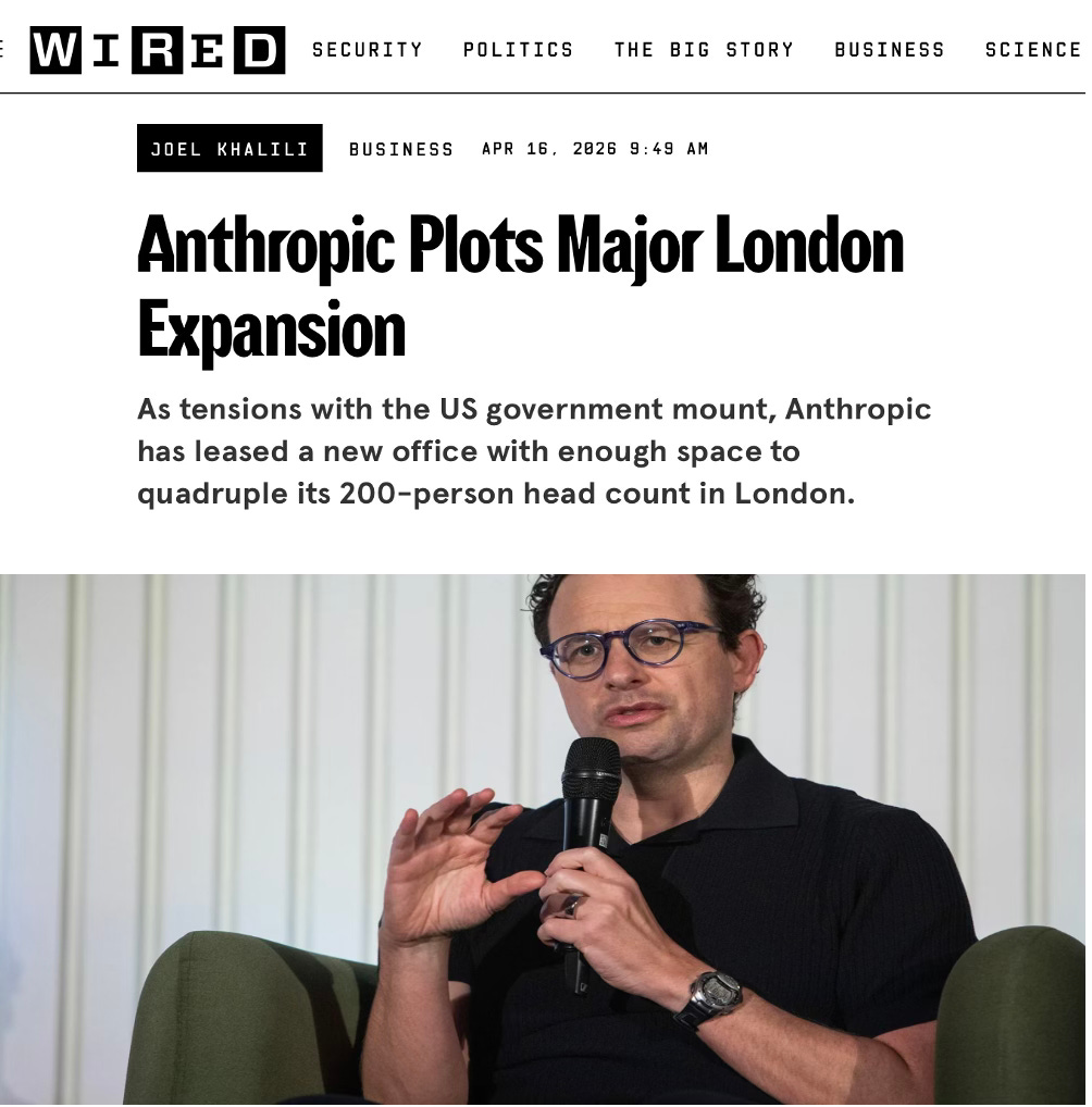 After being designated a supply chain risk by the US Department of War, it seems Dario Amodei sees the strategic benefit of diversifying out of the US security net and building up a strong London hub.