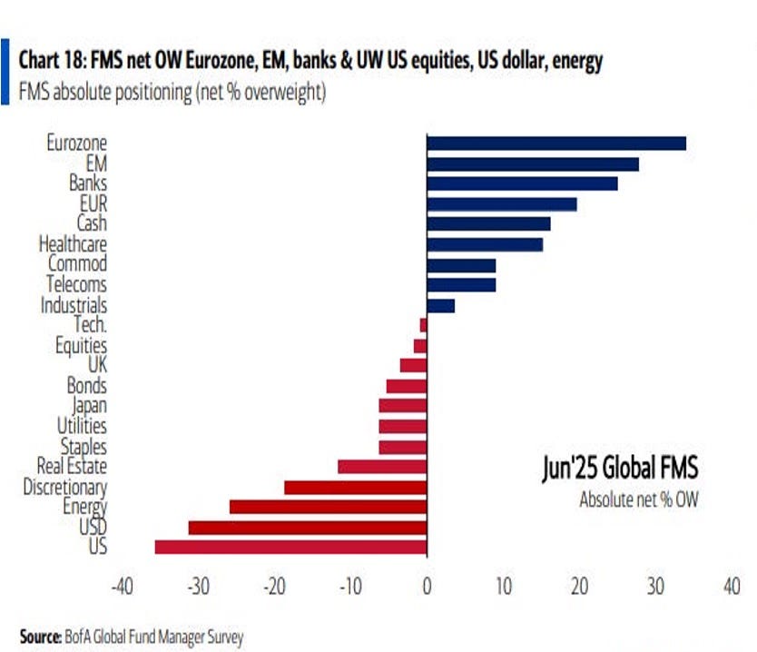 And everyone is underweight the US, Energy, Discretionary, Real Estate and Bonds.