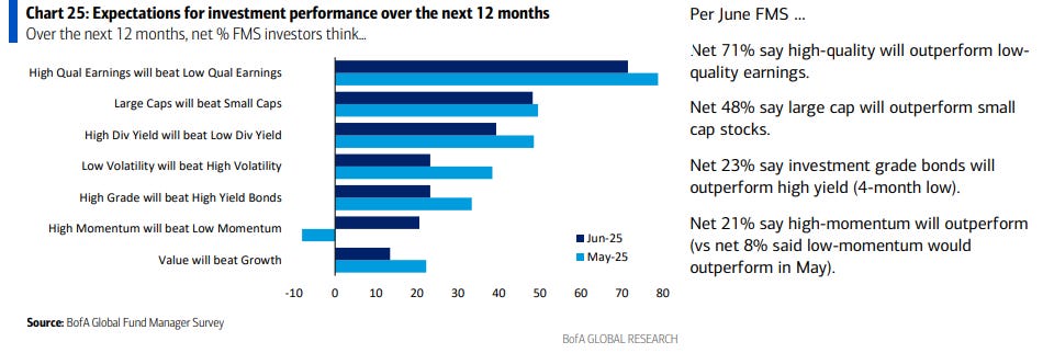 Fund managers are convinced High Quality will continue to beat low quality over the next 12 months.