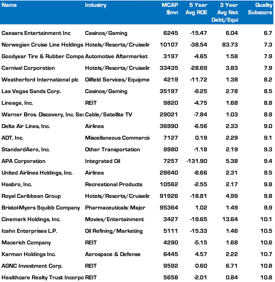 That is why this month we are revisiting which US stocks have the worst Quality Rankings. What has a terrible 5 year average ROE, high net debt/equity and poor earnings growth?