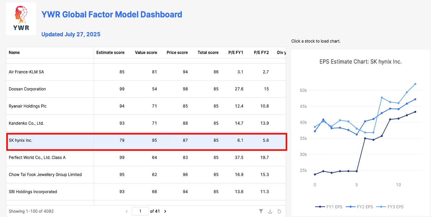The Global Factor Model has been screaming at us to work on SK Hynix since 2024.