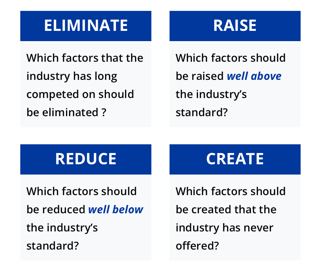 Which is why I loved the Blue Ocean Framework (Find the Blue Ocean) based on the book by Chan Kim & Renée Mauborgne.