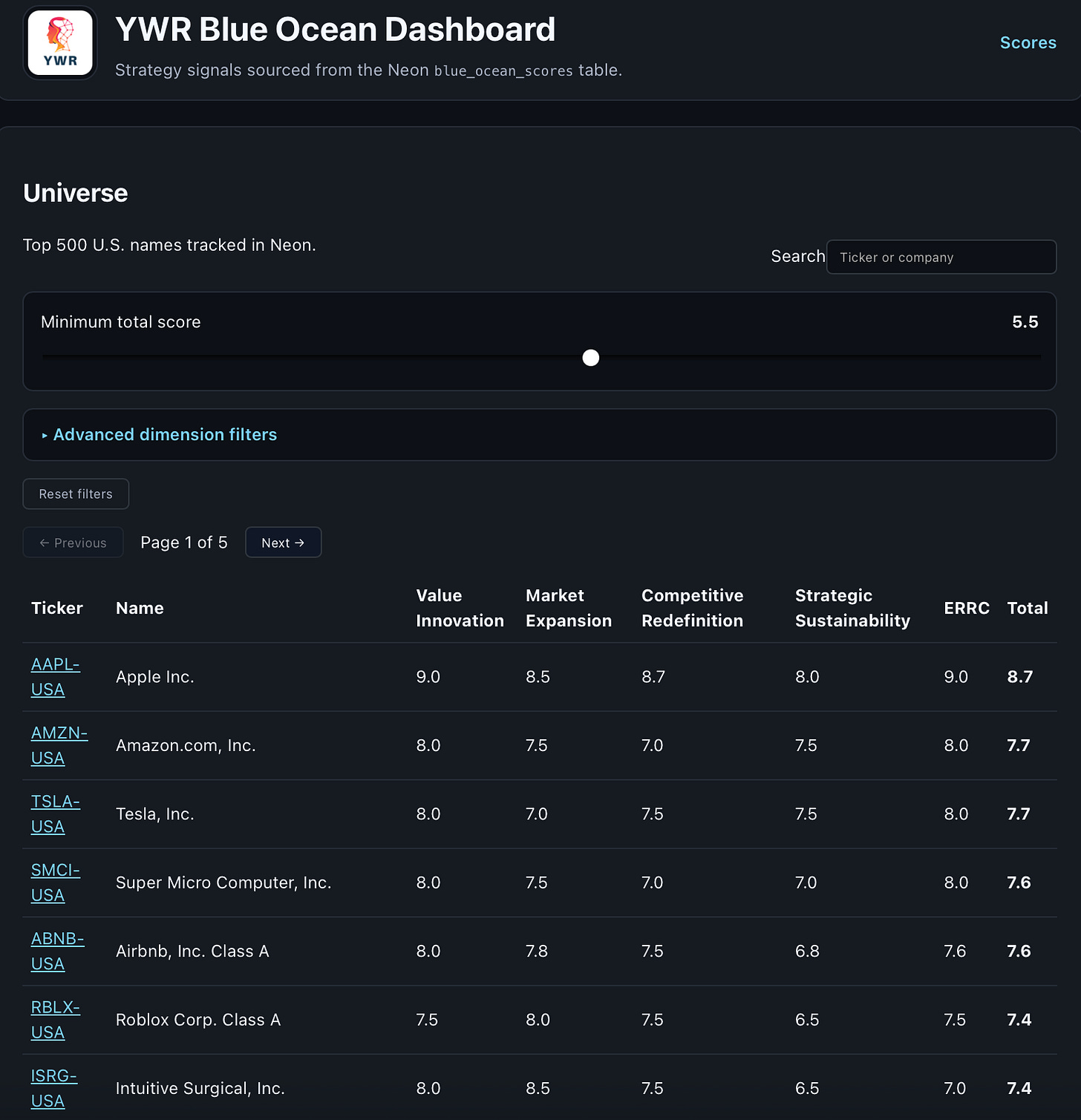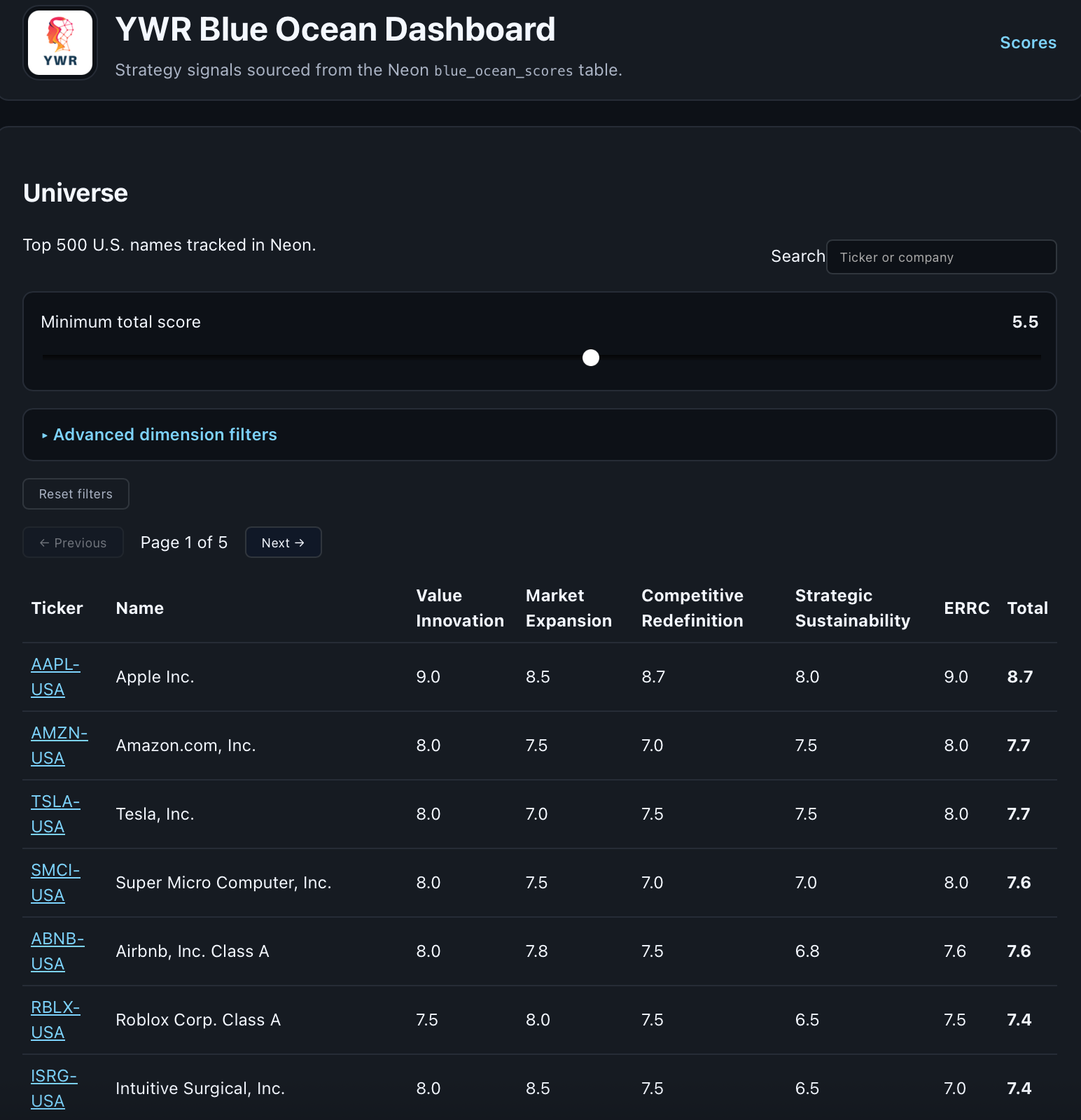 Your latest AI investment tool is the Blue Ocean Dashboard.
